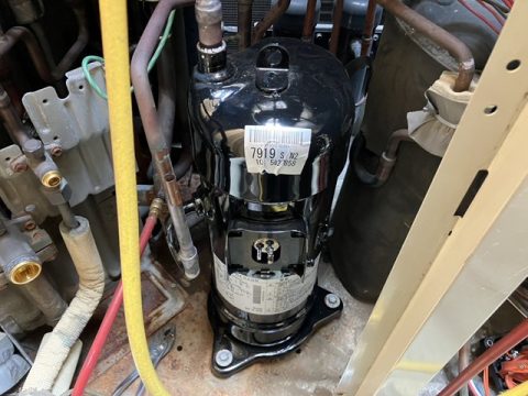 お客様に現状をご報告いたしまして早急に圧縮機と部品交換の見積りを提出致しました。後日お客様からご連絡頂き早急に交換作業の依頼を受けまして作業を行いました。